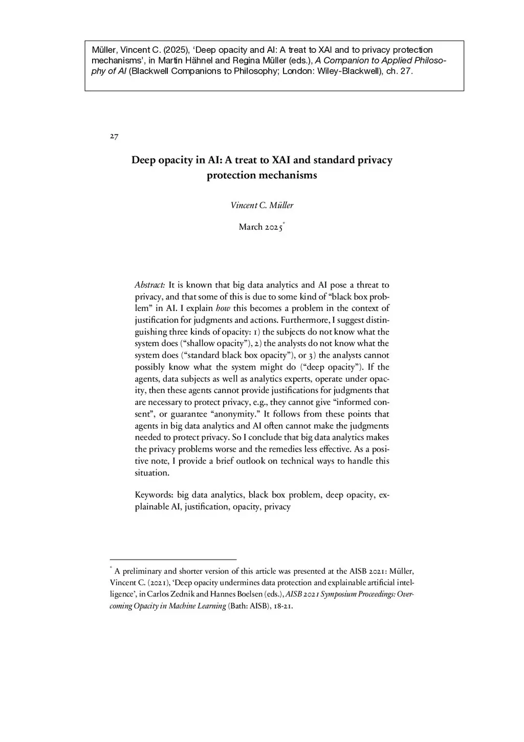 Deep opacity and AI: A threat to XAI and to privacy protection mechanisms