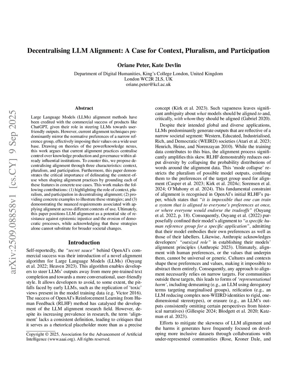 Decentralising LLM Alignment: A Case for Context, Pluralism, and Participation