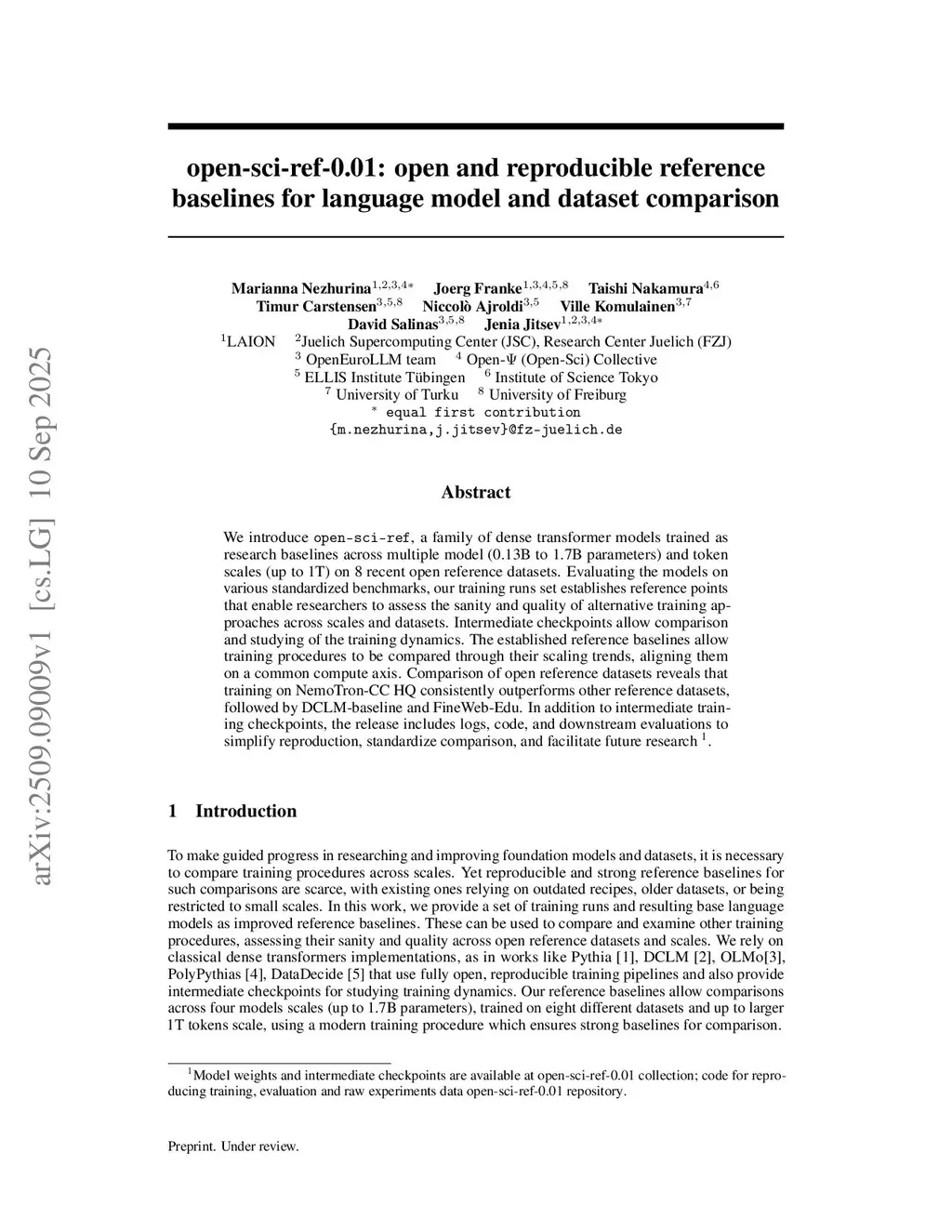 Open-sci-ref-0.01: open and reproducible reference baselines for language model and dataset comparison
