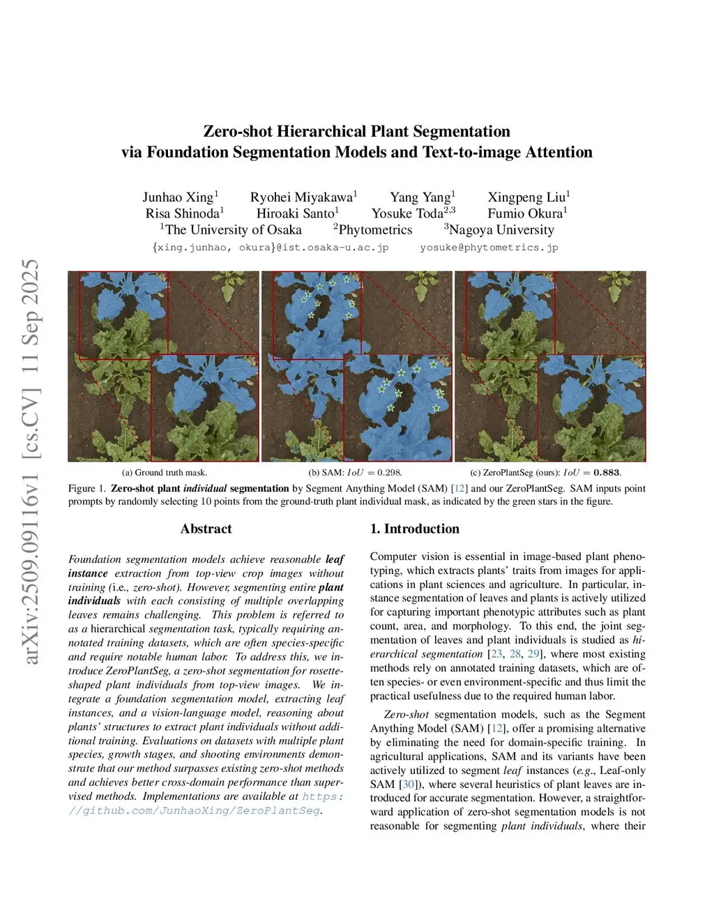 Zero-shot Hierarchical Plant Segmentation via Foundation Segmentation Models and Text-to-image Attention