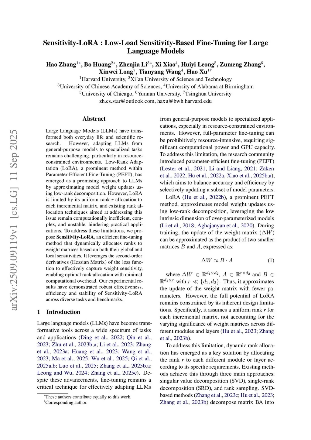 Sensitivity-LoRA: Low-Load Sensitivity-Based Fine-Tuning for Large Language Models