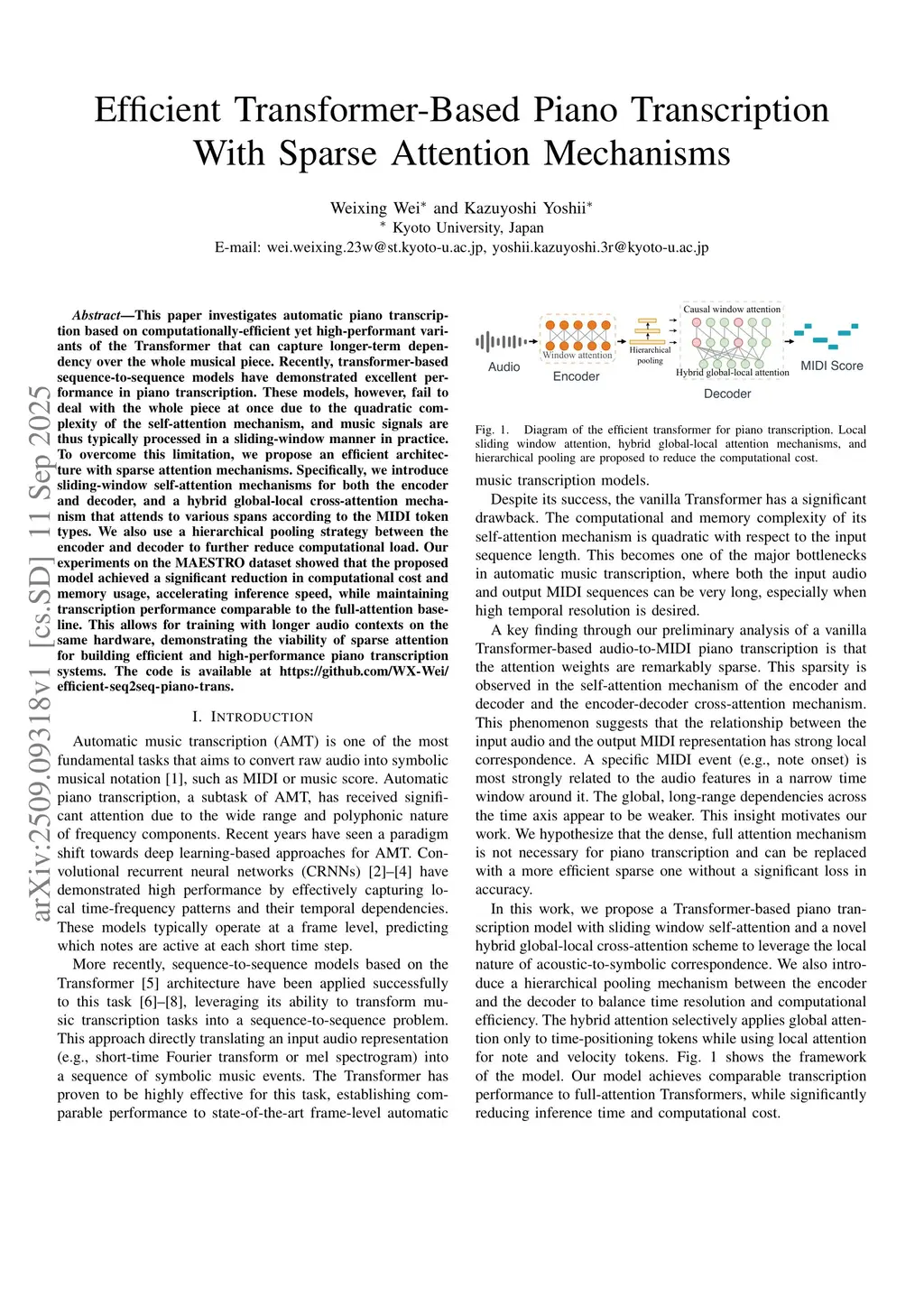 Efficient Transformer-Based Piano Transcription With Sparse Attention Mechanisms