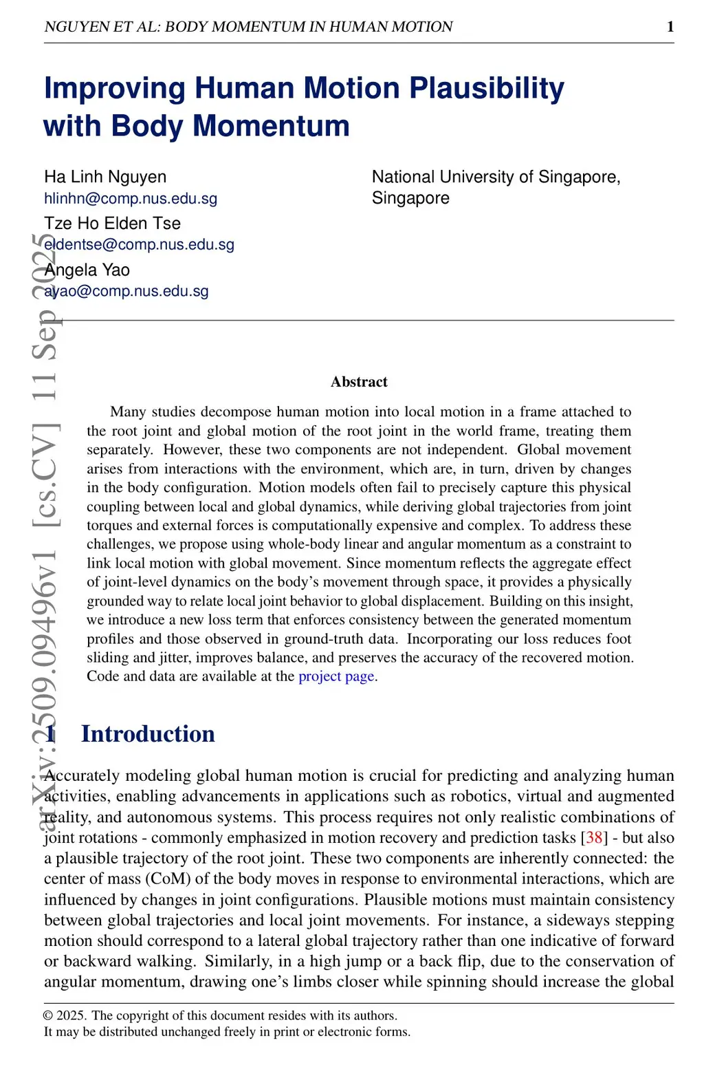 Improving Human Motion Plausibility with Body Momentum
