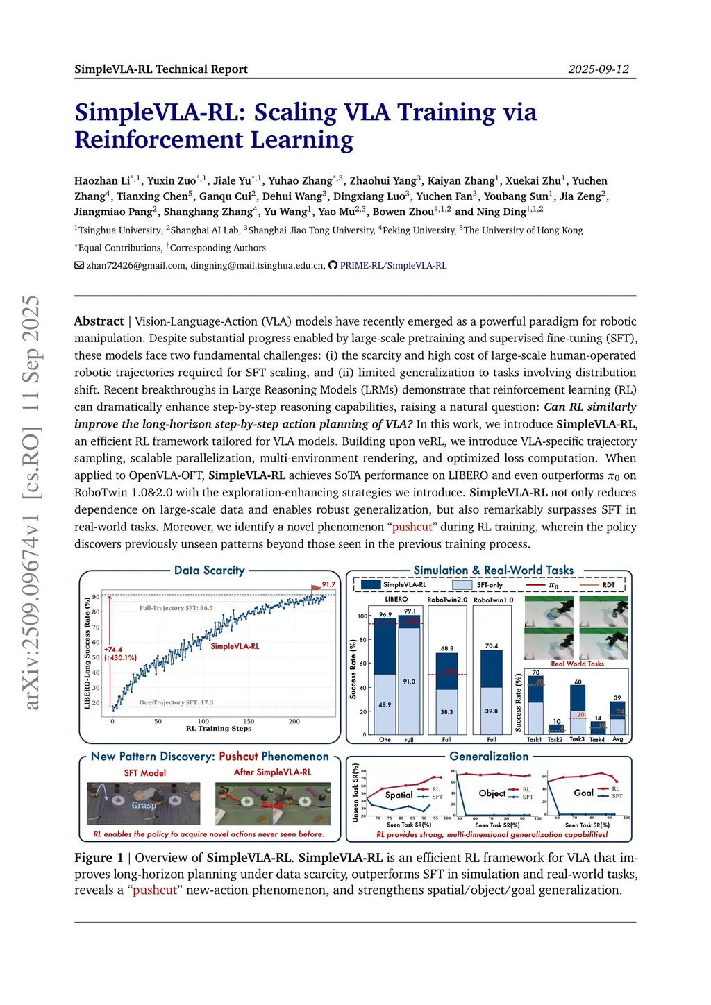 SimpleVLA-RL: Scaling VLA Training via Reinforcement Learning