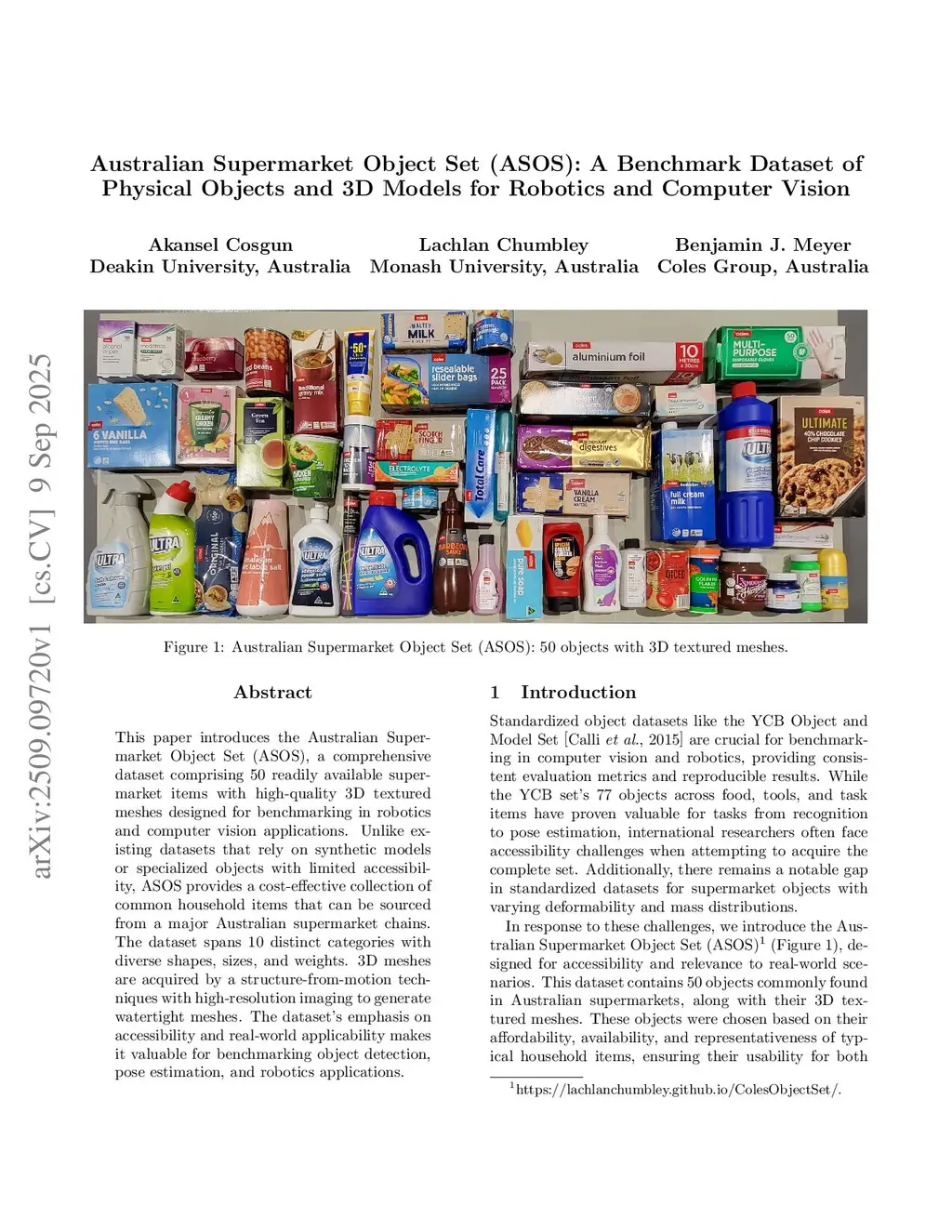Australian Supermarket Object Set (ASOS): A Benchmark Dataset of Physical Objects and 3D Models for Robotics and Computer Vision