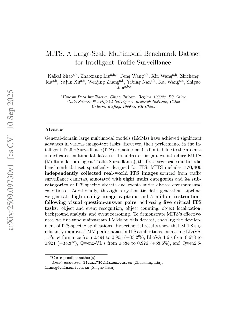 MITS: A Large-Scale Multimodal Benchmark Dataset for Intelligent Traffic Surveillance
