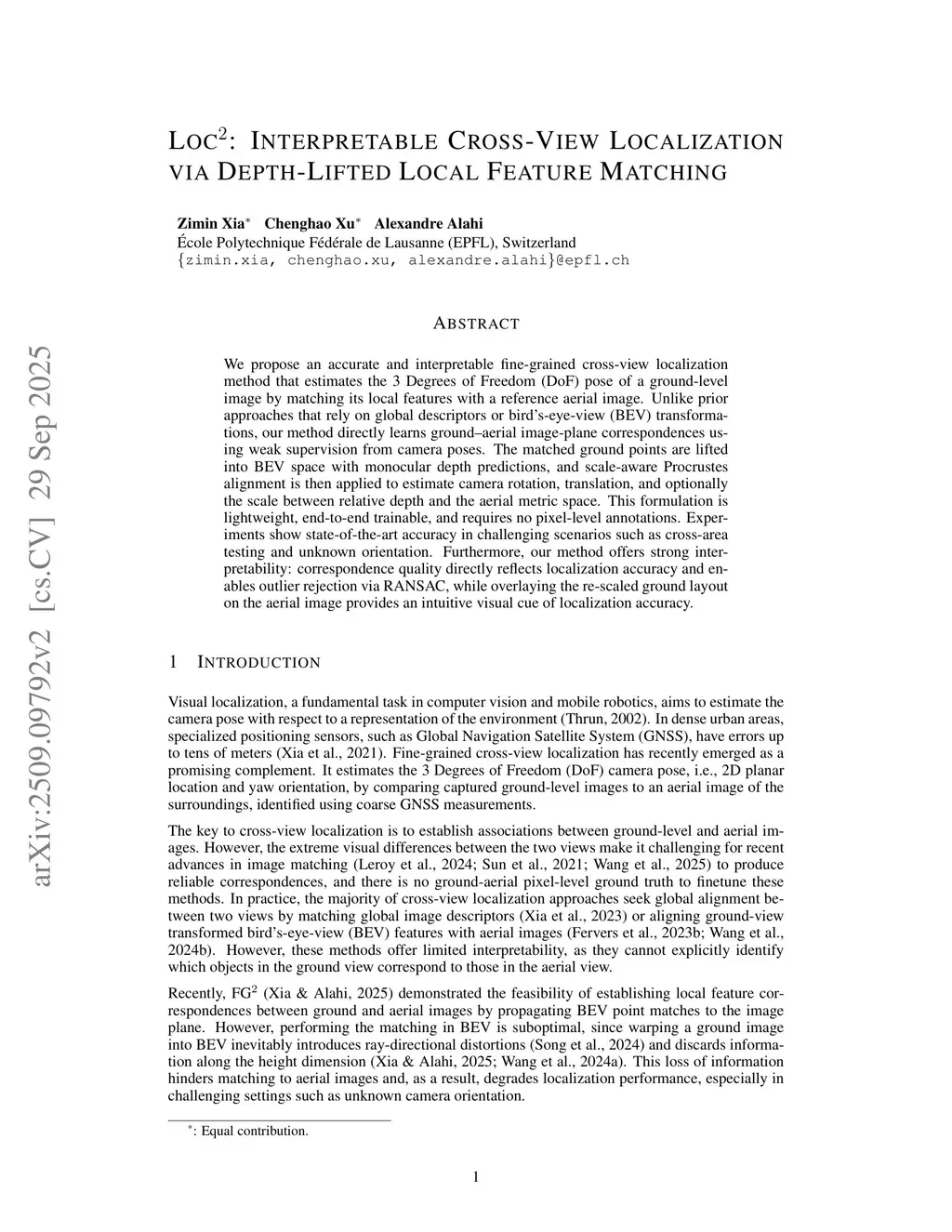 Loc: Interpretable Cross-View Localization via Depth-Lifted Local Feature Matching