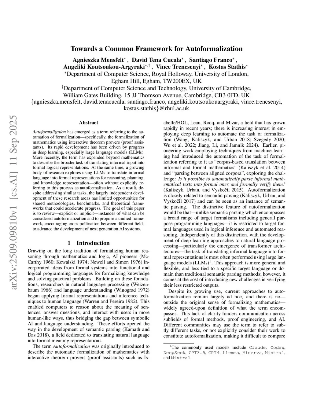 Autoformalization has emerged as a term referring to the automation of formalization - specifically, the formalization of mathematics using interactive theorem provers (proof assistants). Its rapid development has been driven by progress in deep learning, especially large language models (LLMs). More recently, the term has expanded beyond mathematics to describe the broader task of translating informal input into formal logical representations. At the same time, a growing body of research explores using LLMs to translate informal language into formal representations for reasoning, planning, and knowledge representation - often without explicitly referring to this process as autoformalization. As a result, despite addressing similar tasks, the largely independent development of these research areas has limited opportunities for shared methodologies, benchmarks, and theoretical frameworks that could accelerate progress. The goal of this paper is to review - explicit or implicit - instances of what can be considered autoformalization and to propose a unified framework, encouraging cross-pollination between different fields to advance the development of next generation AI systems.