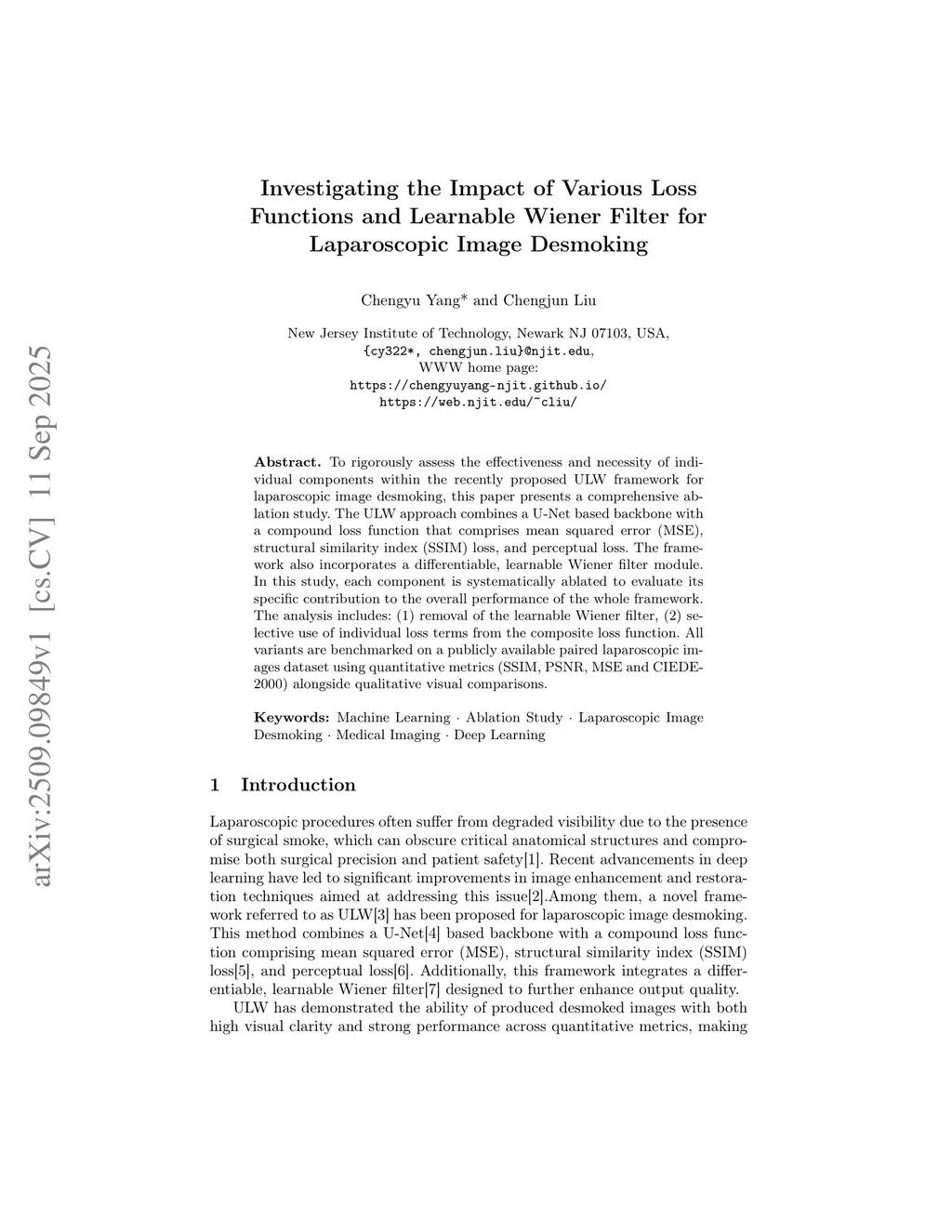 Investigating the Impact of Various Loss Functions and Learnable Wiener Filter for Laparoscopic Image Desmoking