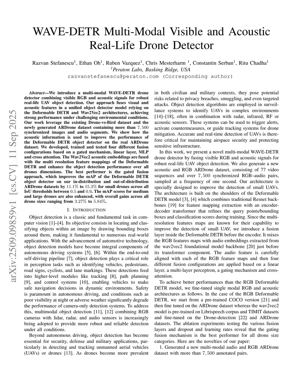 WAVE-DETR Multi-Modal Visible and Acoustic Real-Life Drone Detector