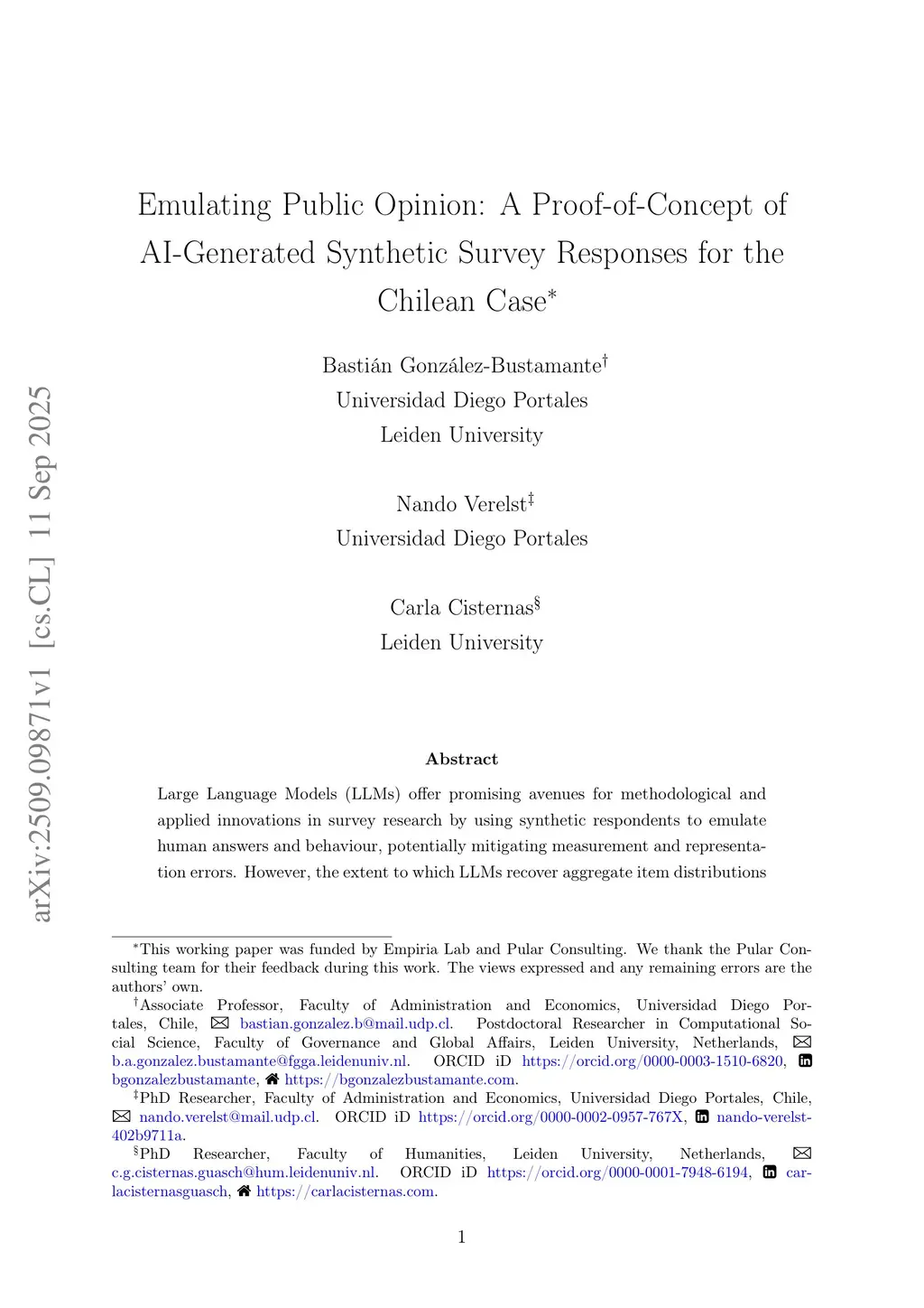 Emulating Public Opinion: A Proof-of-Concept of AI-Generated Synthetic Survey Responses for the Chilean Case