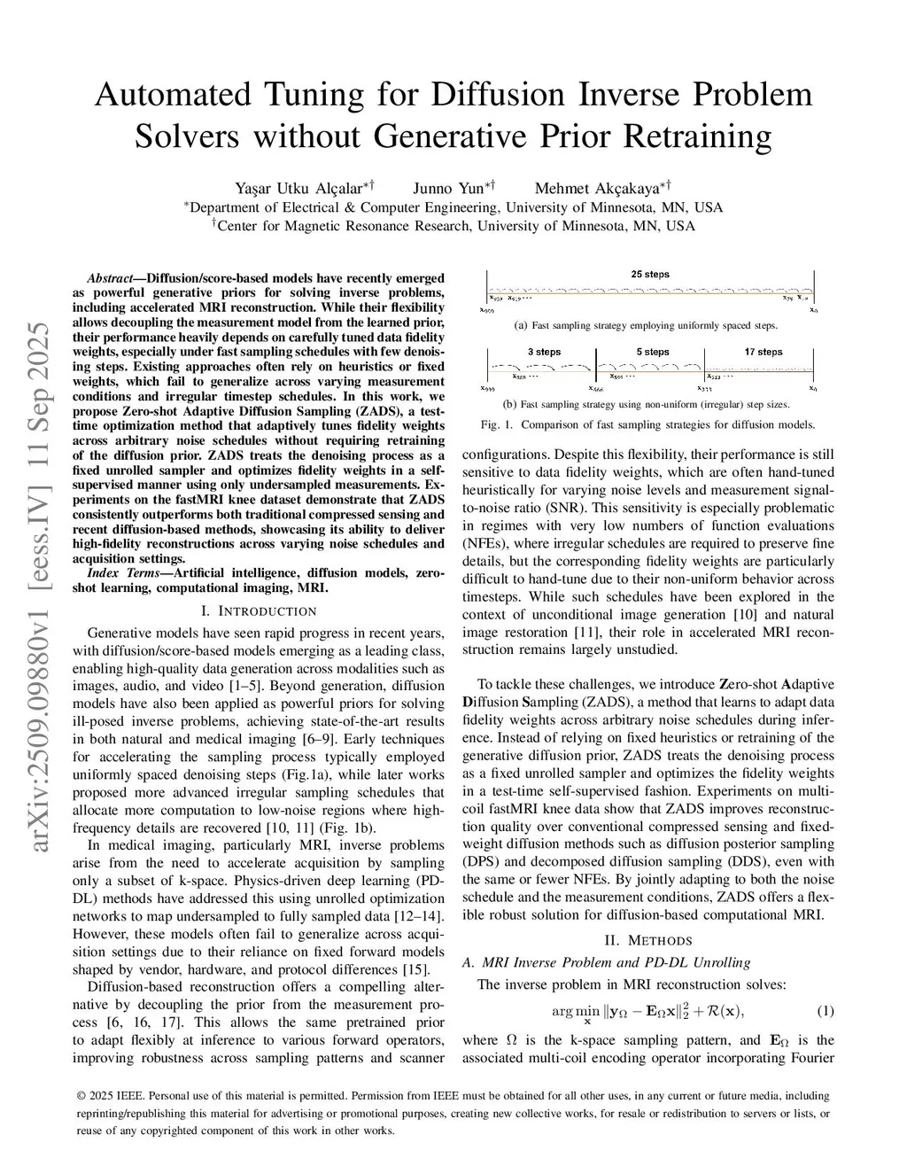 Diffusion/score-based models have recently emerged as powerful generative priors for solving inverse problems, including accelerated MRI reconstruction. While their flexibility allows decoupling the measurement model from the learned prior, their performance heavily depends on carefully tuned data fidelity weights, especially under fast sampling schedules with few denoising steps. Existing approaches often rely on heuristics or fixed weights, which fail to generalize across varying measurement conditions and irregular timestep schedules. In this work, we propose Zero-shot Adaptive Diffusion Sampling (ZADS), a test-time optimization method that adaptively tunes fidelity weights across arbitrary noise schedules without requiring retraining of the diffusion prior. ZADS treats the denoising process as a fixed unrolled sampler and optimizes fidelity weights in a self-supervised manner using only undersampled measurements. Experiments on the fastMRI knee dataset demonstrate that ZADS consistently outperforms both traditional compressed sensing and recent diffusion-based methods, showcasing its ability to deliver high-fidelity reconstructions across varying noise schedules and acquisition settings.