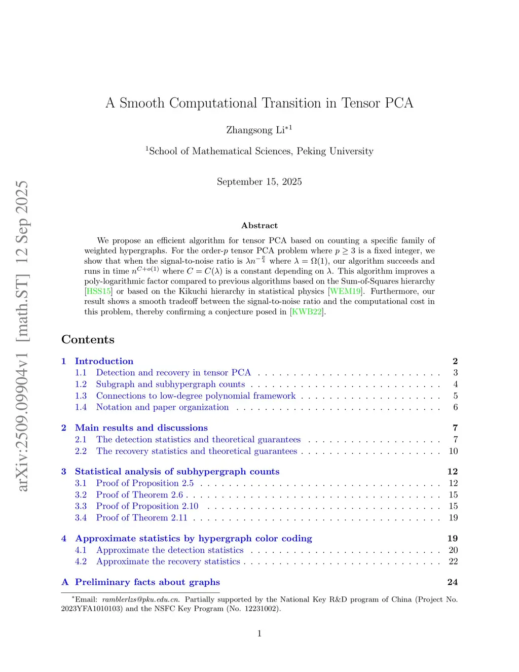 We propose an efficient algorithm for tensor PCA based on counting a specific family of weighted hypergraphs. For the order- tensor PCA problem where is a fixed integer, we show that when the signal-to-noise ratio is where , our algorithm succeeds and runs in time where is a constant depending on . This algorithm improves a poly-logarithmic factor compared to previous algorithms based on the Sum-of-Squares hierarchy \cite{HSS15} or based on the Kikuchi hierarchy in statistical physics \cite{WEM19}. Furthermore, our result shows a smooth tradeoff between the signal-to-noise ratio and the computational cost in this problem, thereby confirming a conjecture posed in \cite{KWB22}.