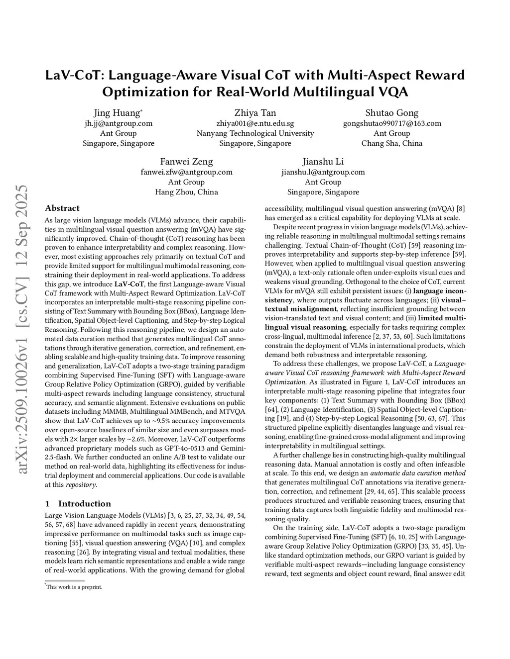 LaV-CoT: Language-Aware Visual CoT with Multi-Aspect Reward Optimization for Real-World Multilingual VQA