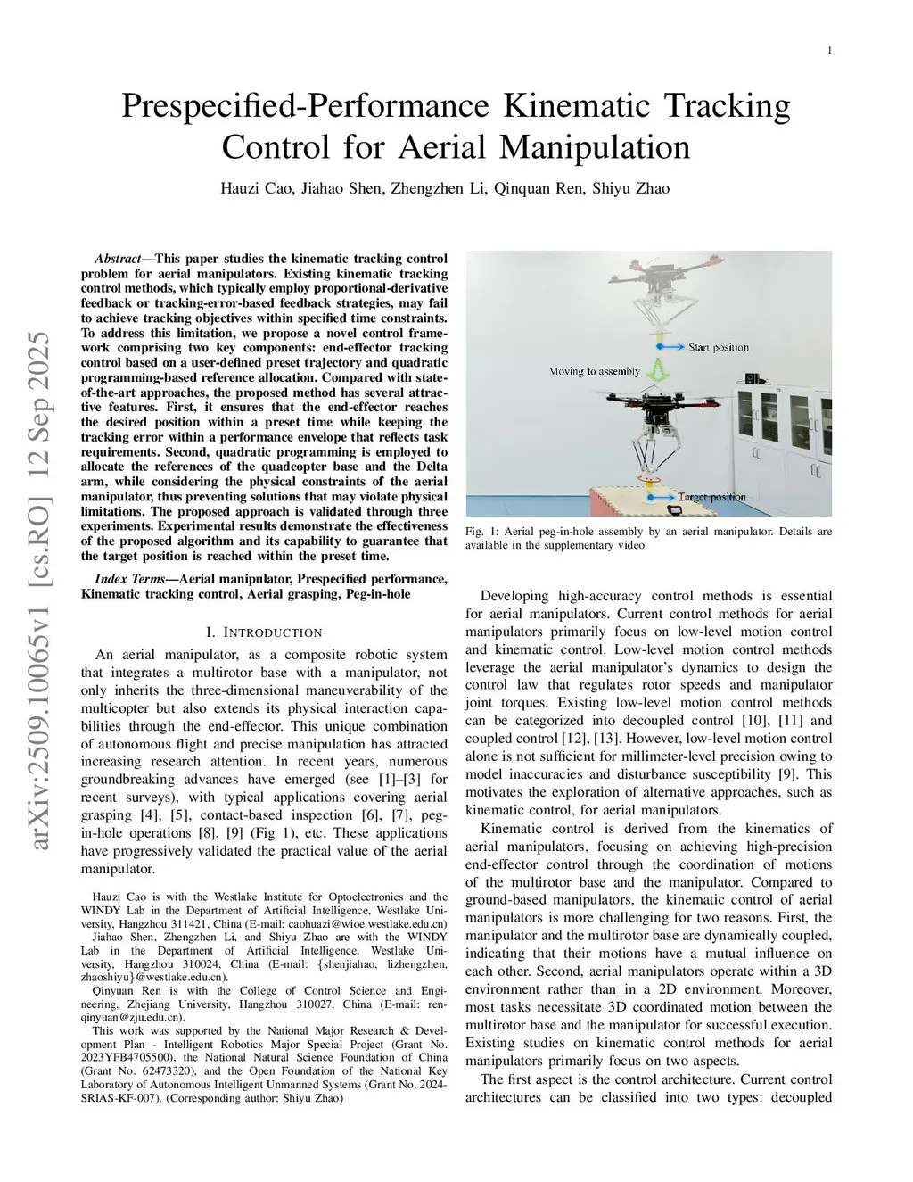 Prespecified-Performance Kinematic Tracking Control for Aerial Manipulation