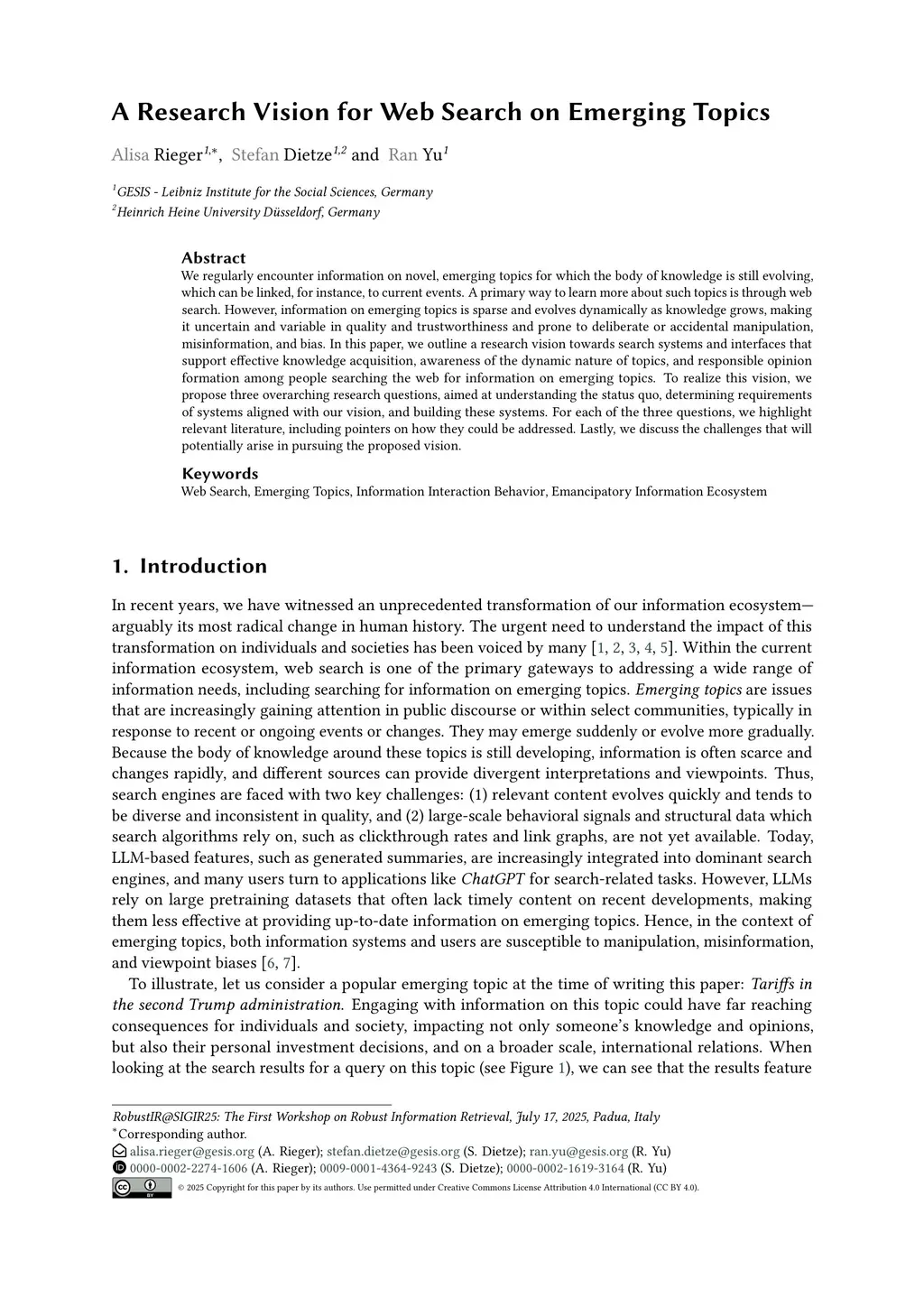 A Research Vision for Web Search on Emerging Topics