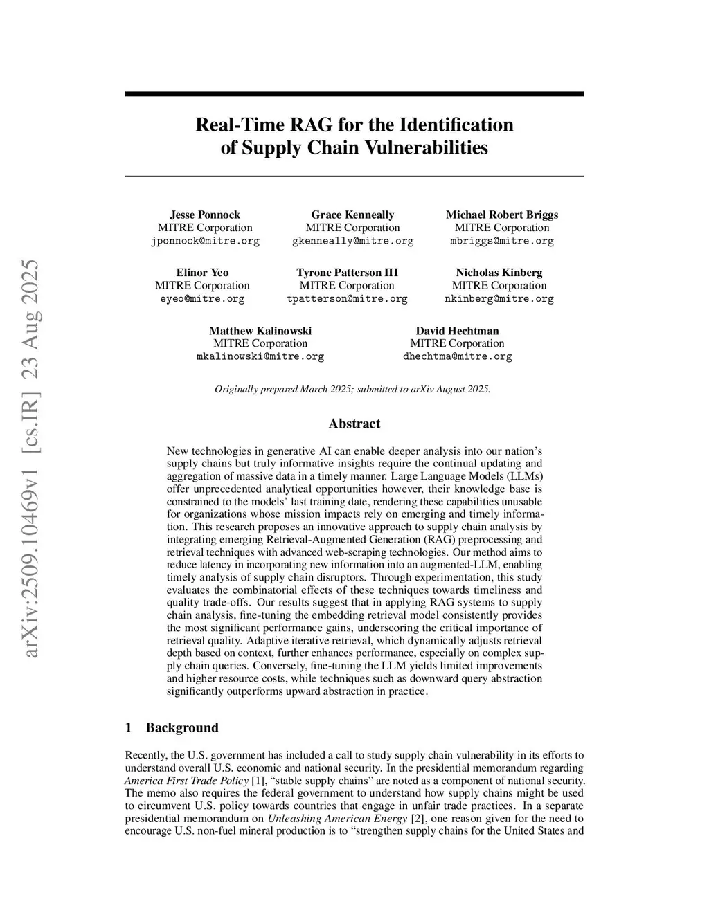 Real-Time RAG for the Identification of Supply Chain Vulnerabilities