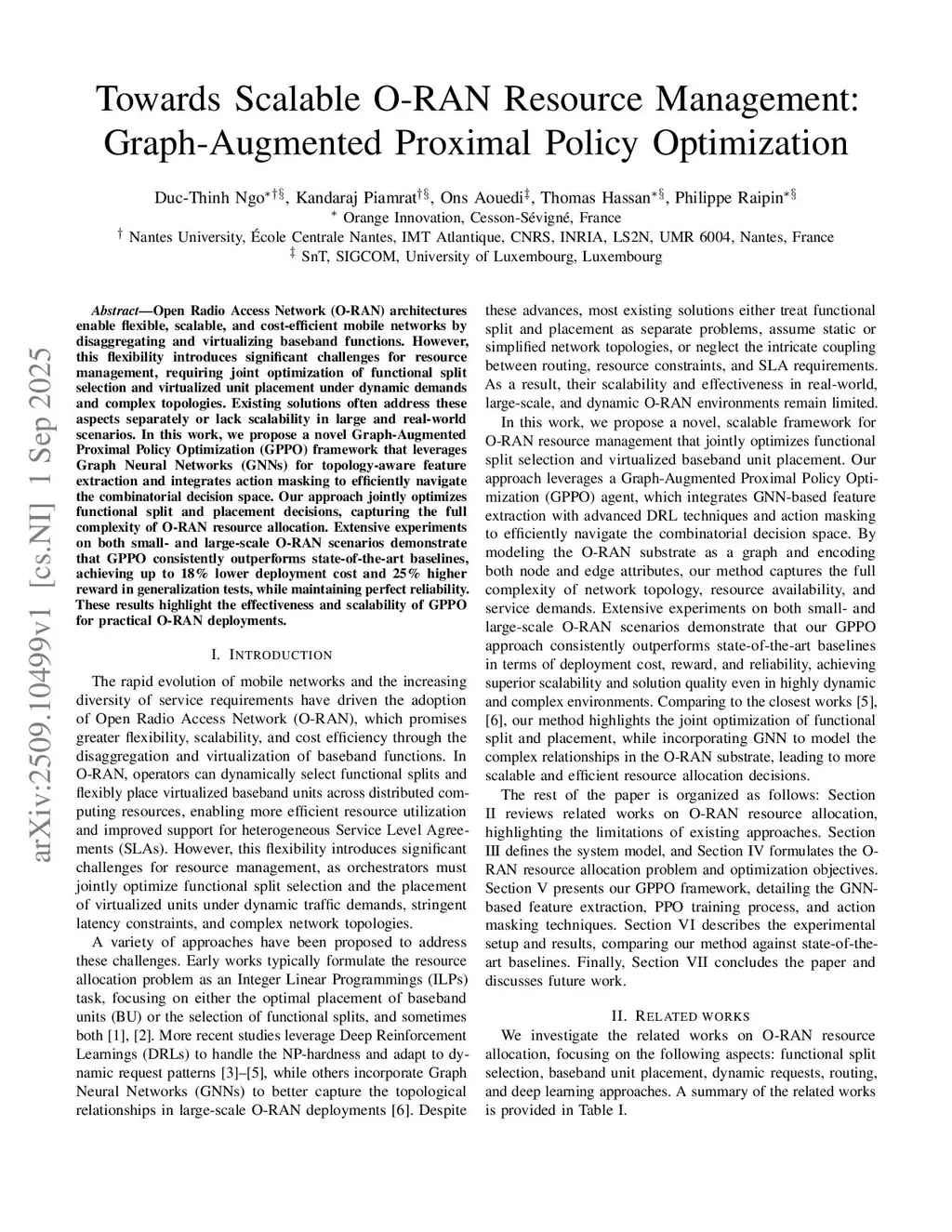 Open Radio Access Network (O-RAN) architectures enable flexible, scalable, and cost-efficient mobile networks by disaggregating and virtualizing baseband functions. However, this flexibility introduces significant challenges for resource management, requiring joint optimization of functional split selection and virtualized unit placement under dynamic demands and complex topologies. Existing solutions often address these aspects separately or lack scalability in large and real-world scenarios. In this work, we propose a novel Graph-Augmented Proximal Policy Optimization (GPPO) framework that leverages Graph Neural Networks (GNNs) for topology-aware feature extraction and integrates action masking to efficiently navigate the combinatorial decision space. Our approach jointly optimizes functional split and placement decisions, capturing the full complexity of O-RAN resource allocation. Extensive experiments on both small-and large-scale O-RAN scenarios demonstrate that GPPO consistently outperforms state-of-the-art baselines, achieving up to 18% lower deployment cost and 25% higher reward in generalization tests, while maintaining perfect reliability. These results highlight the effectiveness and scalability of GPPO for practical O-RAN deployments.