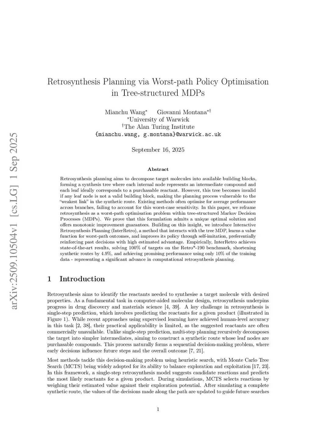 Retrosynthesis Planning via Worst-path Policy Optimisation in Tree-structured MDPs