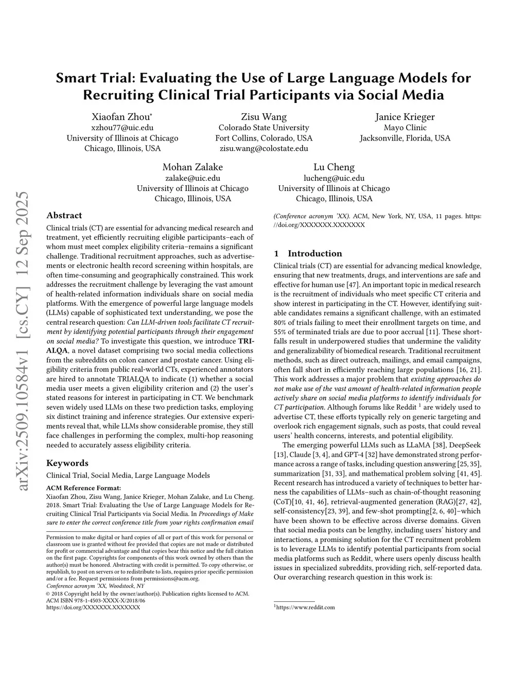 Smart Trial: Evaluating the Use of Large Language Models for Recruiting Clinical Trial Participants via Social Media