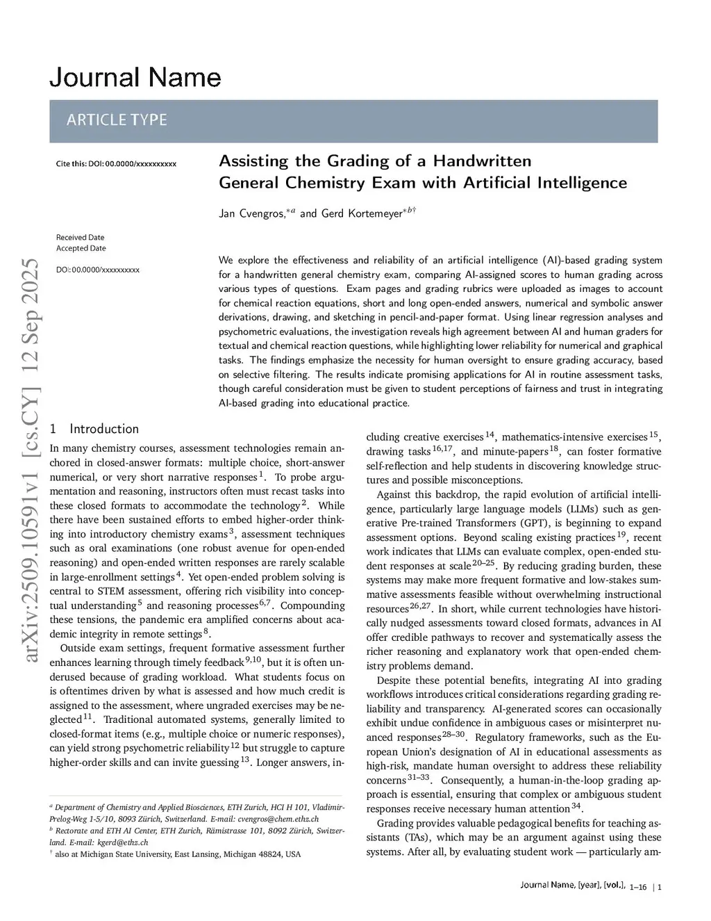 Assisting the Grading of a Handwritten General Chemistry Exam with Artificial Intelligence