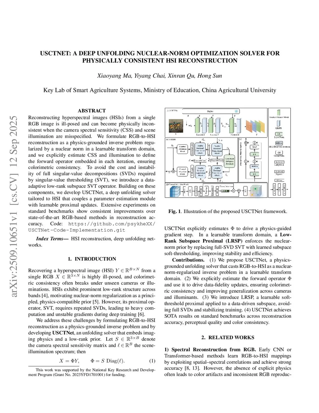 USCTNet: A deep unfolding nuclear-norm optimization solver for physically consistent HSI reconstruction