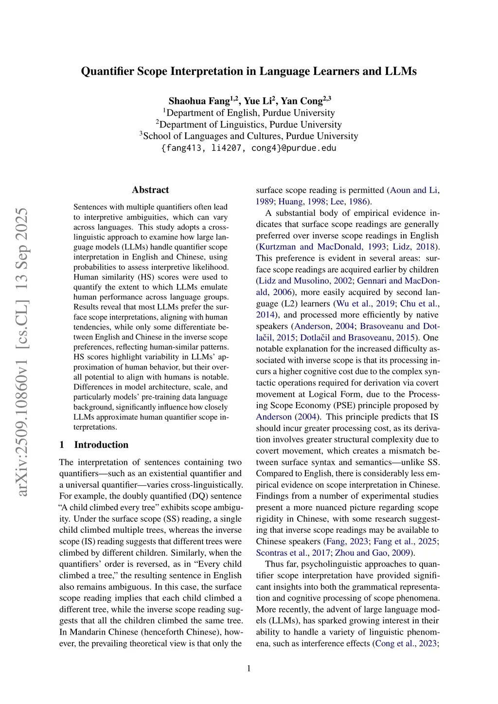 Quantifier Scope Interpretation in Language Learners and LLMs