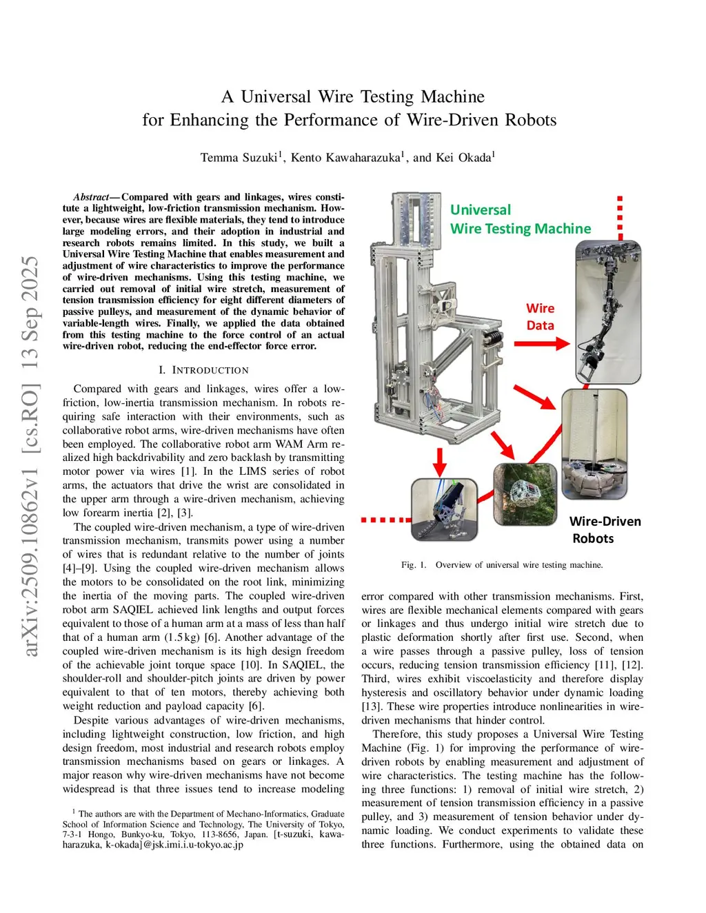 A Universal Wire Testing Machine for Enhancing the Performance of Wire-Driven Robots
