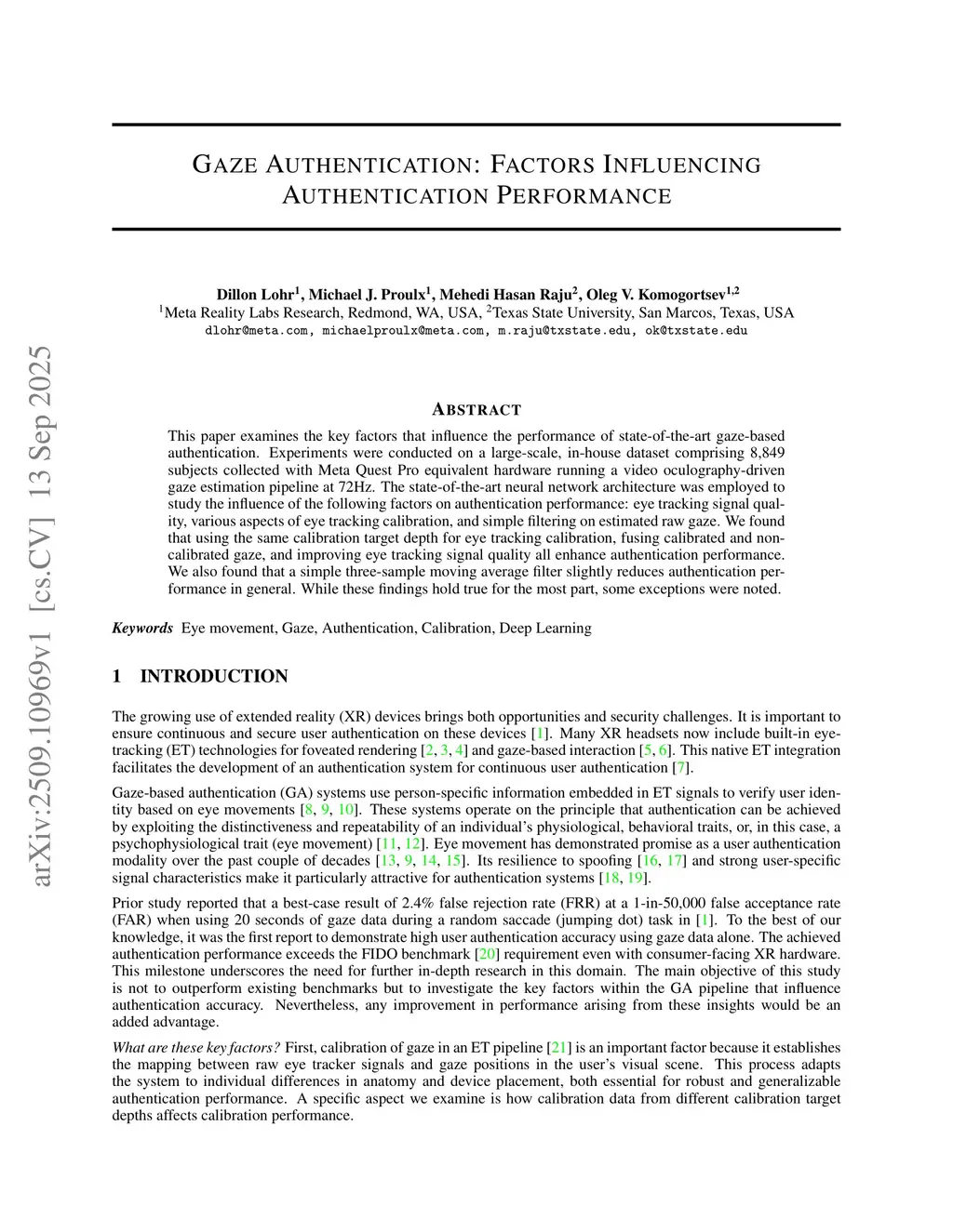 This paper examines the key factors that influence the performance of state-of-the-art gaze-based authentication. Experiments were conducted on a large-scale, in-house dataset comprising 8,849 subjects collected with Meta Quest Pro equivalent hardware running a video oculography-driven gaze estimation pipeline at 72Hz. The state-of-the-art neural network architecture was employed to study the influence of the following factors on authentication performance: eye tracking signal quality, various aspects of eye tracking calibration, and simple filtering on estimated raw gaze. We found that using the same calibration target depth for eye tracking calibration, fusing calibrated and non-calibrated gaze, and improving eye tracking signal quality all enhance authentication performance. We also found that a simple three-sample moving average filter slightly reduces authentication performance in general. While these findings hold true for the most part, some exceptions were noted.