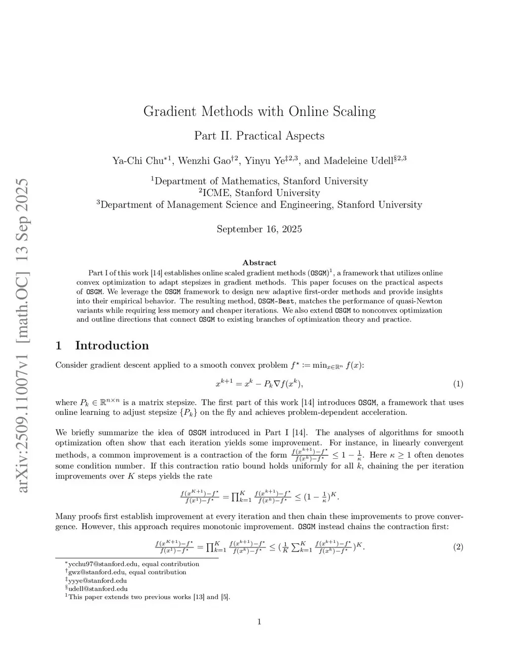 Gradient Methods with Online Scaling Part II. Practical Aspects