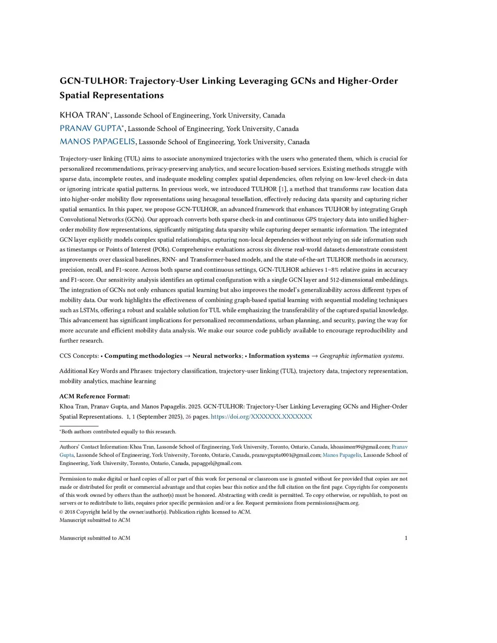 GCN-TULHOR: Trajectory-User Linking Leveraging GCNs and Higher-Order Spatial Representations