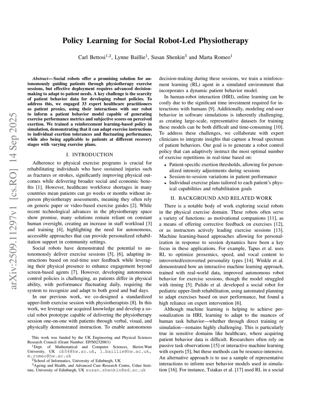 Policy Learning for Social Robot-Led Physiotherapy