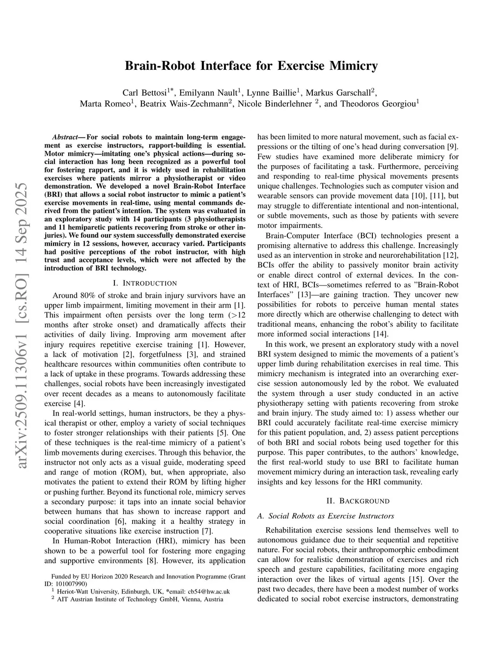 Brain-Robot Interface for Exercise Mimicry