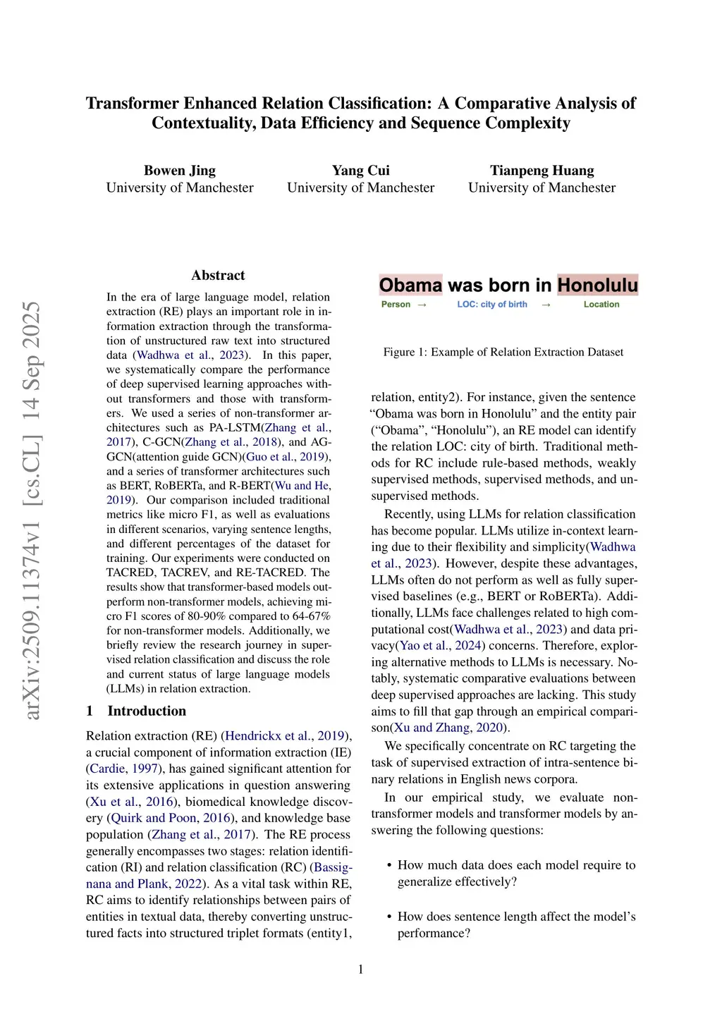 Transformer Enhanced Relation Classification: A Comparative Analysis of Contextuality, Data Efficiency and Sequence Complexity