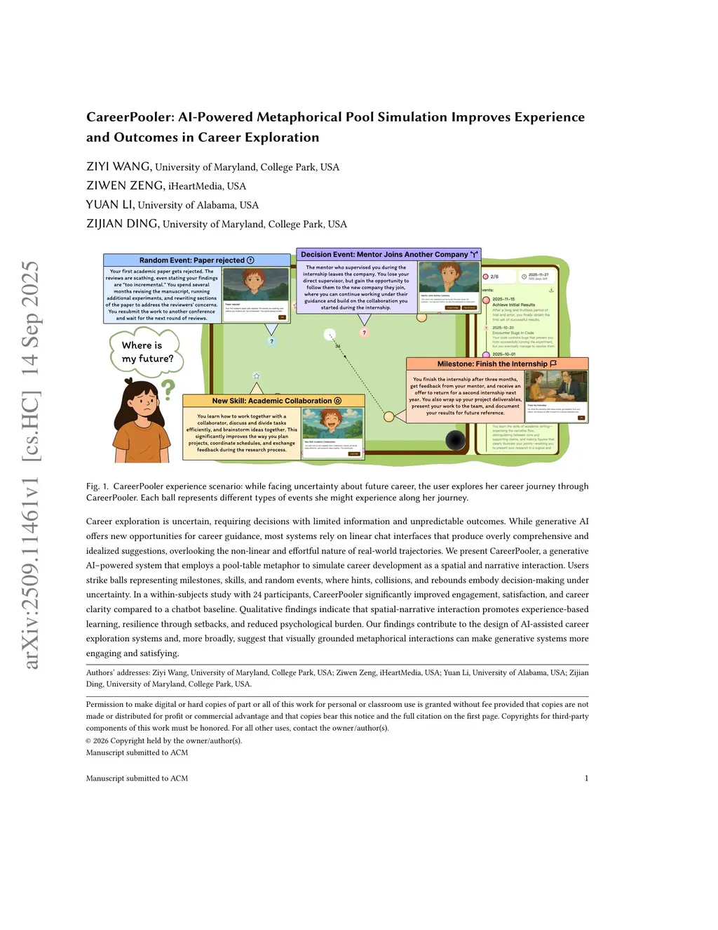 CareerPooler: AI-Powered Metaphorical Pool Simulation Improves Experience and Outcomes in Career Exploration