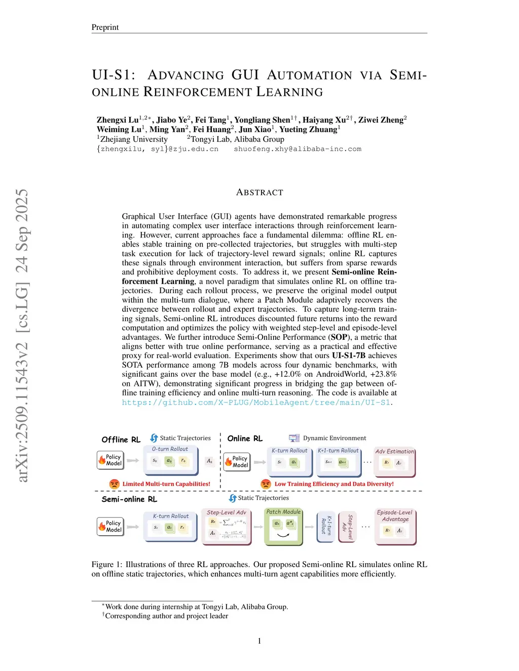 UI-S1: Advancing GUI Automation via Semi-online Reinforcement Learning
