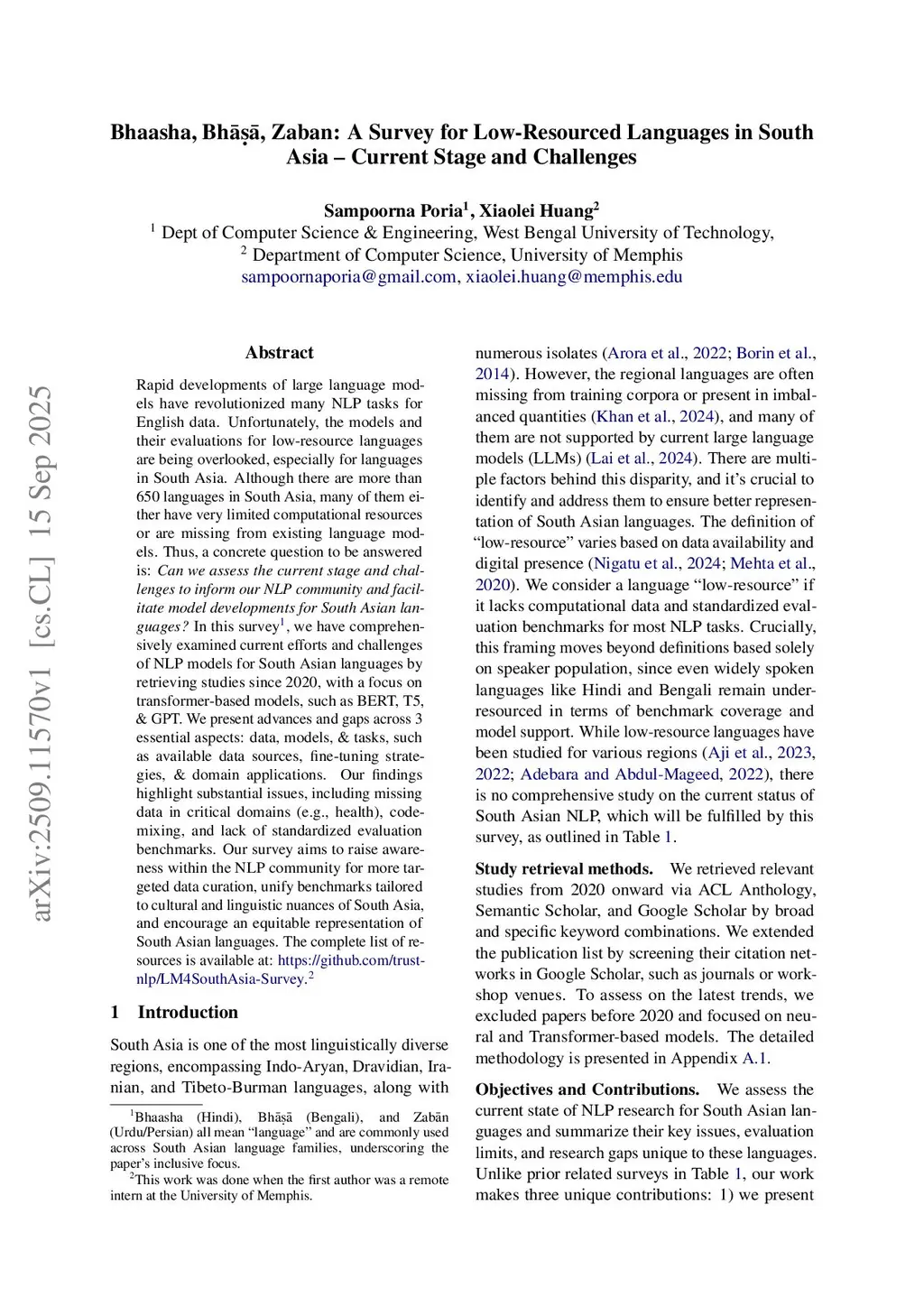 Bhaasha, Bhasa, Zaban: A Survey for Low-Resourced Languages in South Asia - Current Stage and Challenges