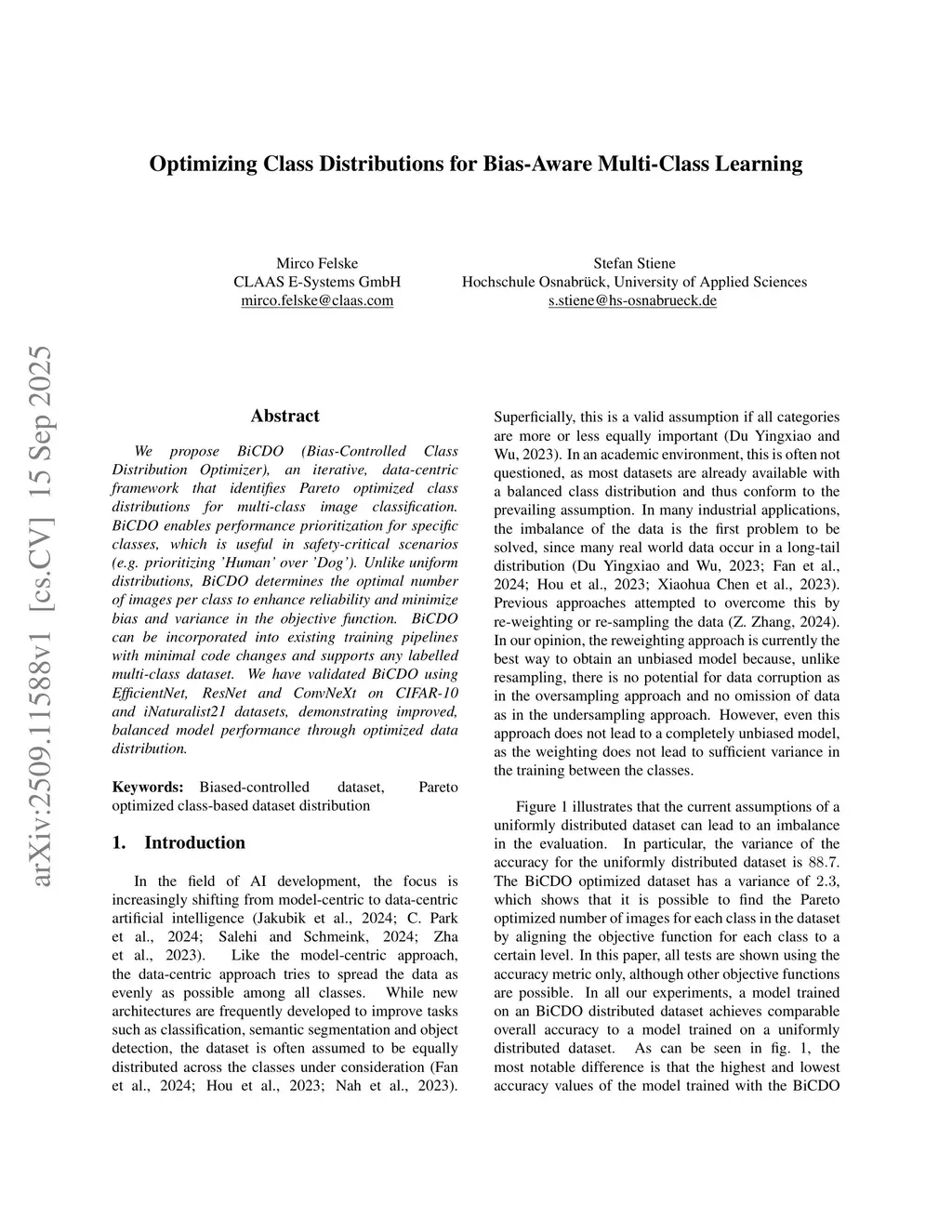 We propose BiCDO (Bias-Controlled Class Distribution Optimizer), an iterative, data-centric framework that identifies Pareto optimized class distributions for multi-class image classification. BiCDO enables performance prioritization for specific classes, which is useful in safety-critical scenarios (e.g. prioritizing 'Human' over 'Dog'). Unlike uniform distributions, BiCDO determines the optimal number of images per class to enhance reliability and minimize bias and variance in the objective function. BiCDO can be incorporated into existing training pipelines with minimal code changes and supports any labelled multi-class dataset. We have validated BiCDO using EfficientNet, ResNet and ConvNeXt on CIFAR-10 and iNaturalist21 datasets, demonstrating improved, balanced model performance through optimized data distribution.