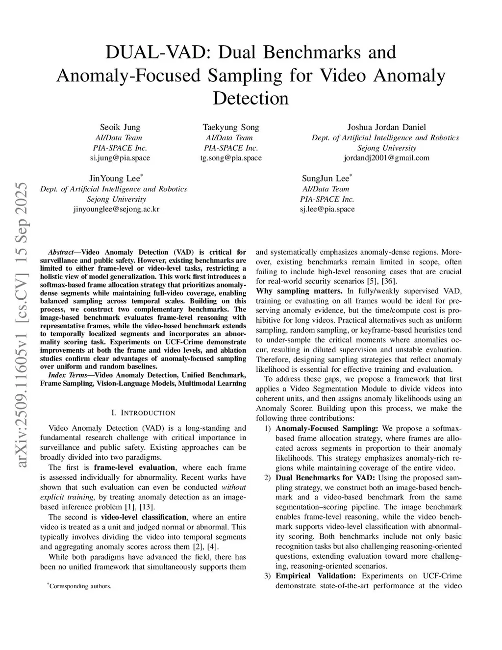 DUAL-VAD: Dual Benchmarks and Anomaly-Focused Sampling for Video Anomaly Detection