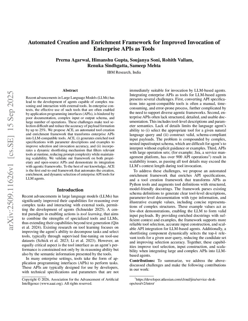 Automated Creation and Enrichment Framework for Improved Invocation of Enterprise APIs as Tools