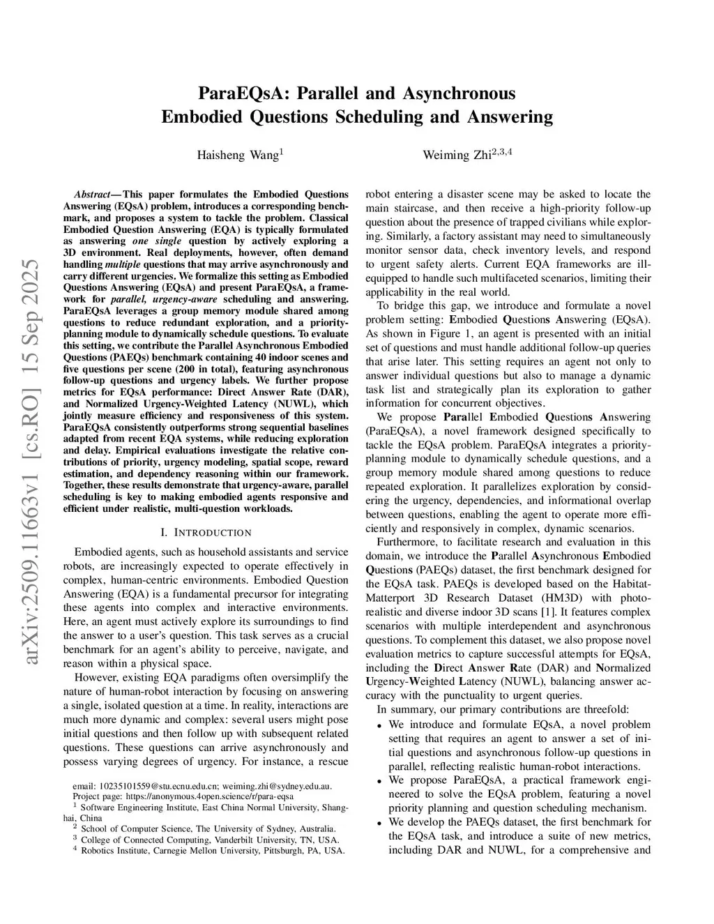 ParaEQsA: Parallel and Asynchronous Embodied Questions Scheduling and Answering