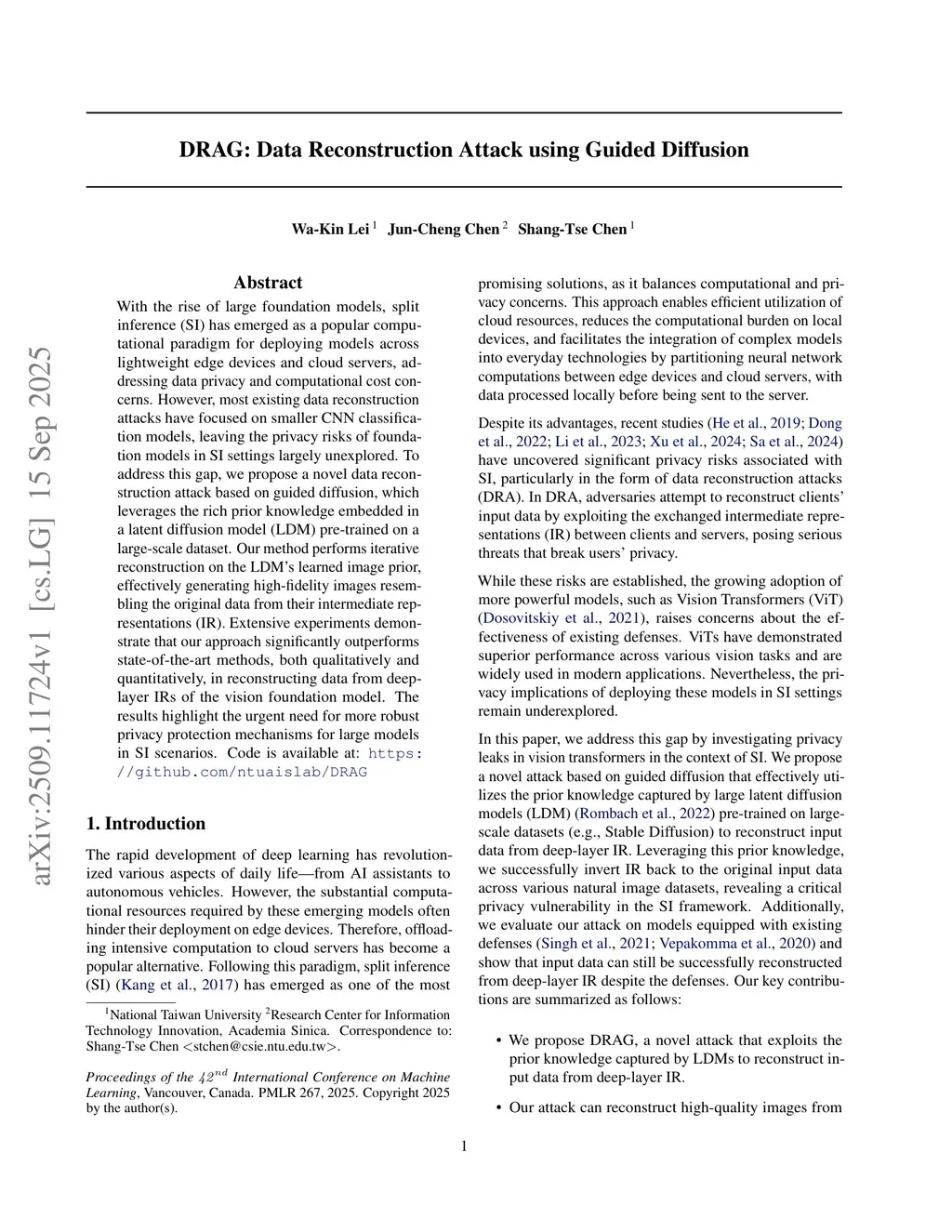 DRAG: Data Reconstruction Attack using Guided Diffusion