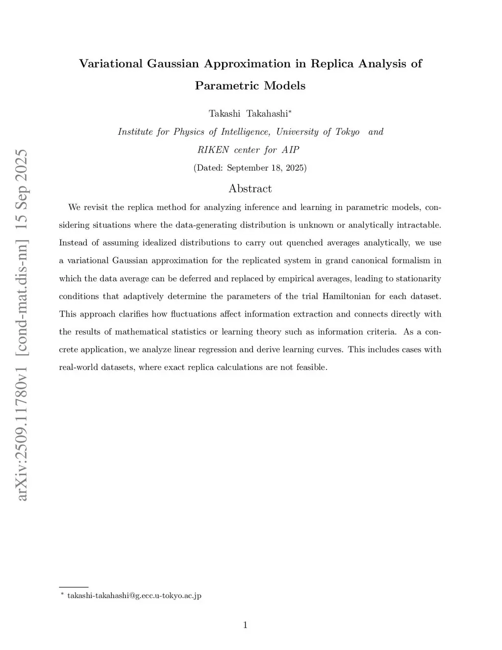 We revisit the replica method for analyzing inference and learning in parametric models, considering situations where the data-generating distribution is unknown or analytically intractable. Instead of assuming idealized distributions to carry out quenched averages analytically, we use a variational Gaussian approximation for the replicated system in grand canonical formalism in which the data average can be deferred and replaced by empirical averages, leading to stationarity conditions that adaptively determine the parameters of the trial Hamiltonian for each dataset. This approach clarifies how fluctuations affect information extraction and connects directly with the results of mathematical statistics or learning theory such as information criteria. As a concrete application, we analyze linear regression and derive learning curves. This includes cases with real-world datasets, where exact replica calculations are not feasible.