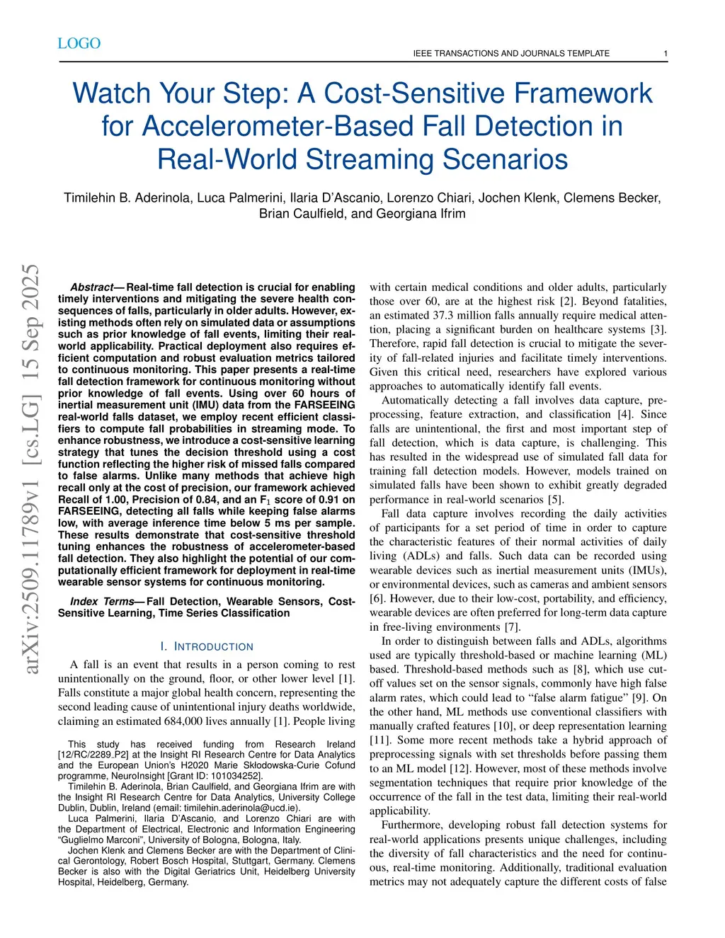 Watch Your Step: A Cost-Sensitive Framework for Accelerometer-Based Fall Detection in Real-World Streaming Scenarios