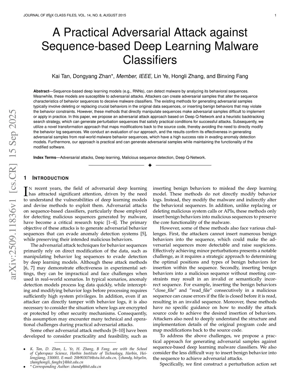 A Practical Adversarial Attack against Sequence-based Deep Learning Malware Classifiers