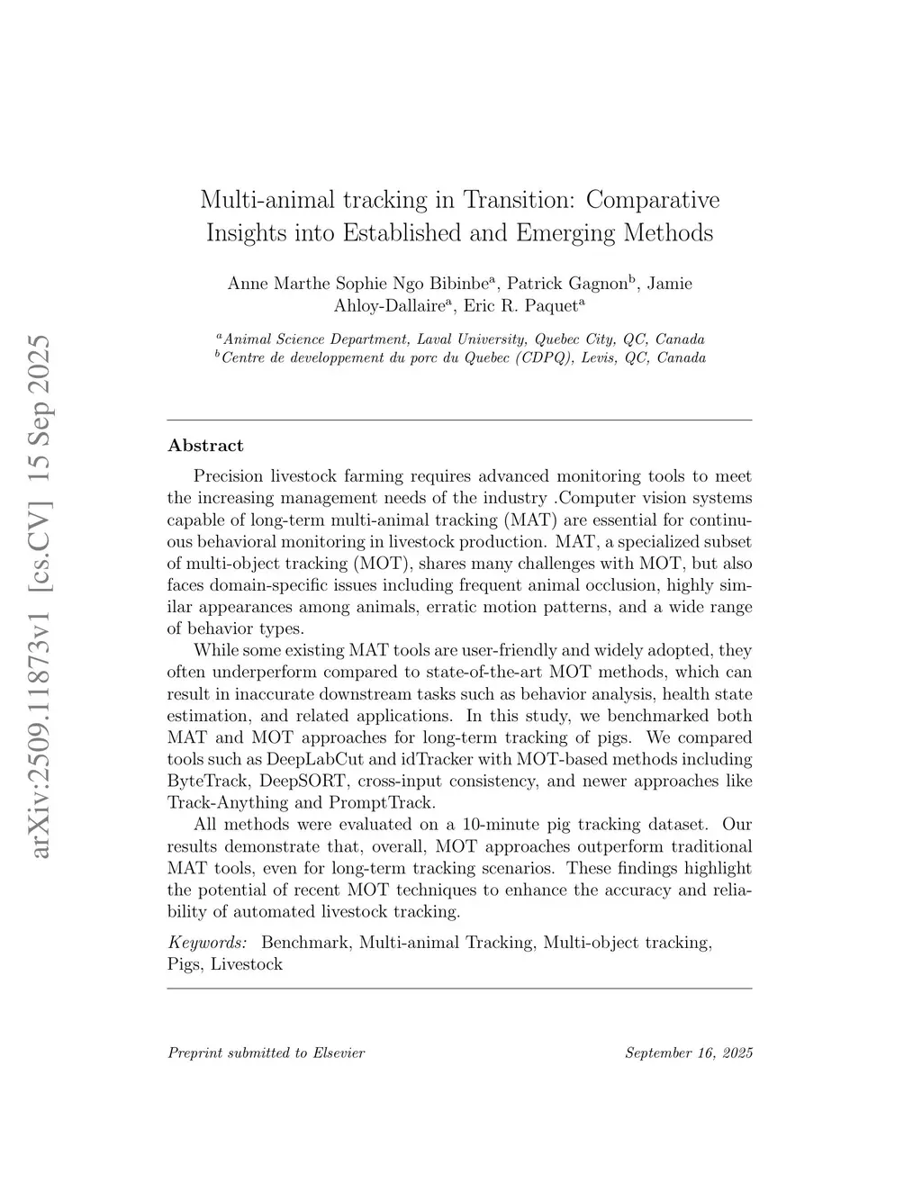Precision livestock farming requires advanced monitoring tools to meet the increasing management needs of the industry. Computer vision systems capable of long-term multi-animal tracking (MAT) are essential for continuous behavioral monitoring in livestock production. MAT, a specialized subset of multi-object tracking (MOT), shares many challenges with MOT, but also faces domain-specific issues including frequent animal occlusion, highly similar appearances among animals, erratic motion patterns, and a wide range of behavior types.While some existing MAT tools are user-friendly and widely adopted, they often underperform compared to state-of-the-art MOT methods, which can result in inaccurate downstream tasks such as behavior analysis, health state estimation, and related applications. In this study, we benchmarked both MAT and MOT approaches for long-term tracking of pigs. We compared tools such as DeepLabCut and idTracker with MOT-based methods including ByteTrack, DeepSORT, cross-input consistency, and newer approaches like Track-Anything and PromptTrack.All methods were evaluated on a 10-minute pig tracking dataset. Our results demonstrate that, overall, MOT approaches outperform traditional MAT tools, even for long-term tracking scenarios. These findings highlight the potential of recent MOT techniques to enhance the accuracy and reliability of automated livestock tracking.