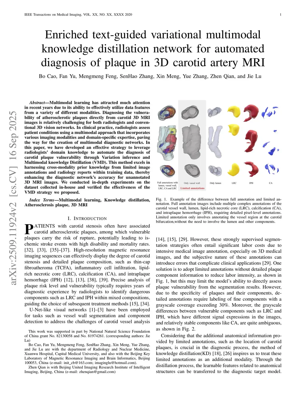 Enriched text-guided variational multimodal knowledge distillation network (VMD) for automated diagnosis of plaque vulnerability in 3D carotid artery MRI