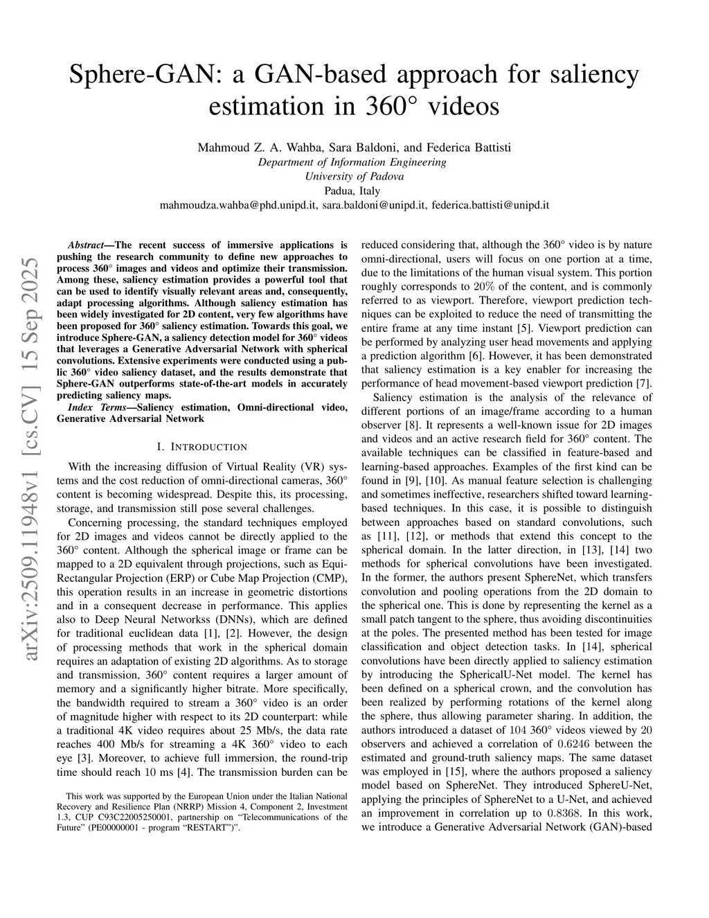 Sphere-GAN: a GAN-based Approach for Saliency Estimation in 360° Videos