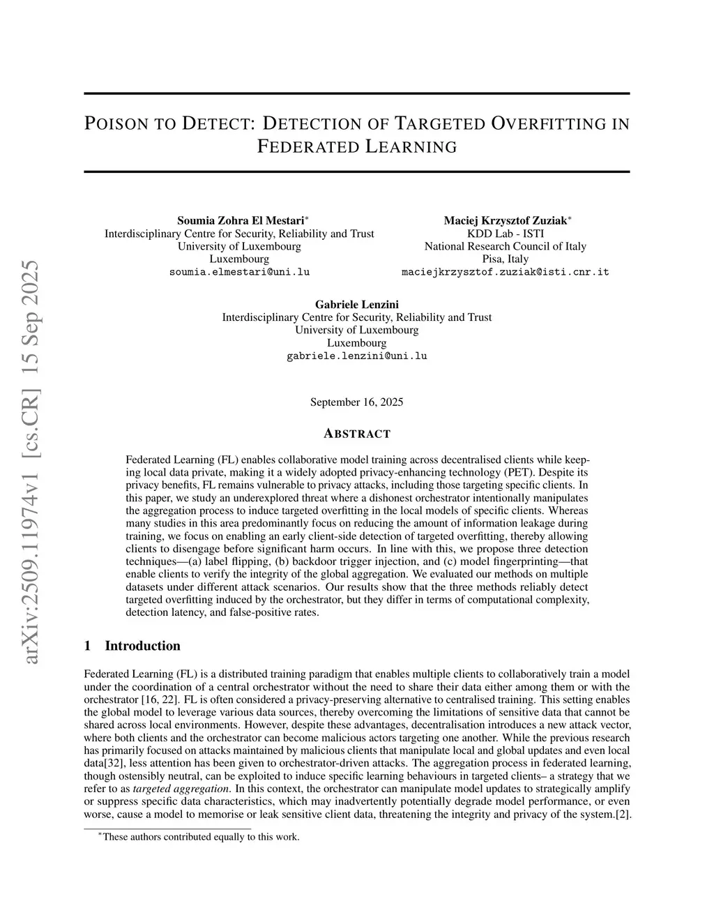 Poison to Detect: Detection of Targeted Overfitting in Federated Learning