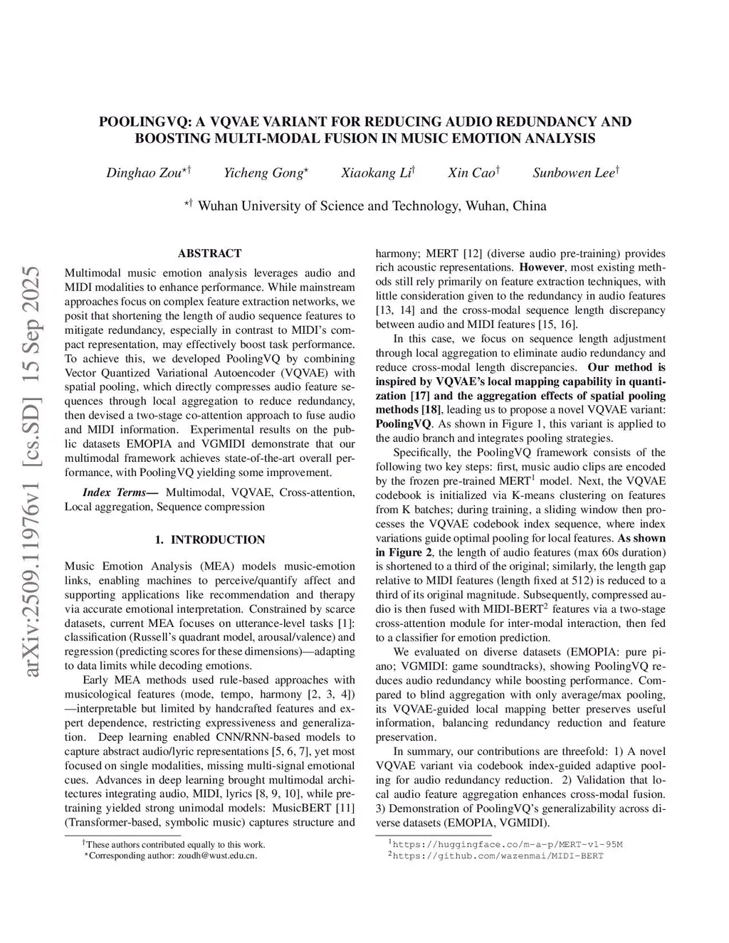 PoolingVQ: A VQVAE Variant for Reducing Audio Redundancy and Boosting Multi-Modal Fusion in Music Emotion Analysis